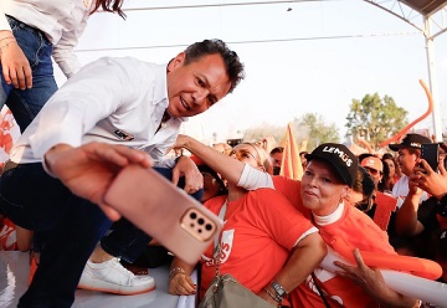 “El triunfo está muy cerca. Por supuesto en esta fase final, estamos hablando de 15 días más para poder festejar juntas y juntos, porque esta elección, escuchen bien, la vamos a ganar por doble dígito”, señaló el candidato.