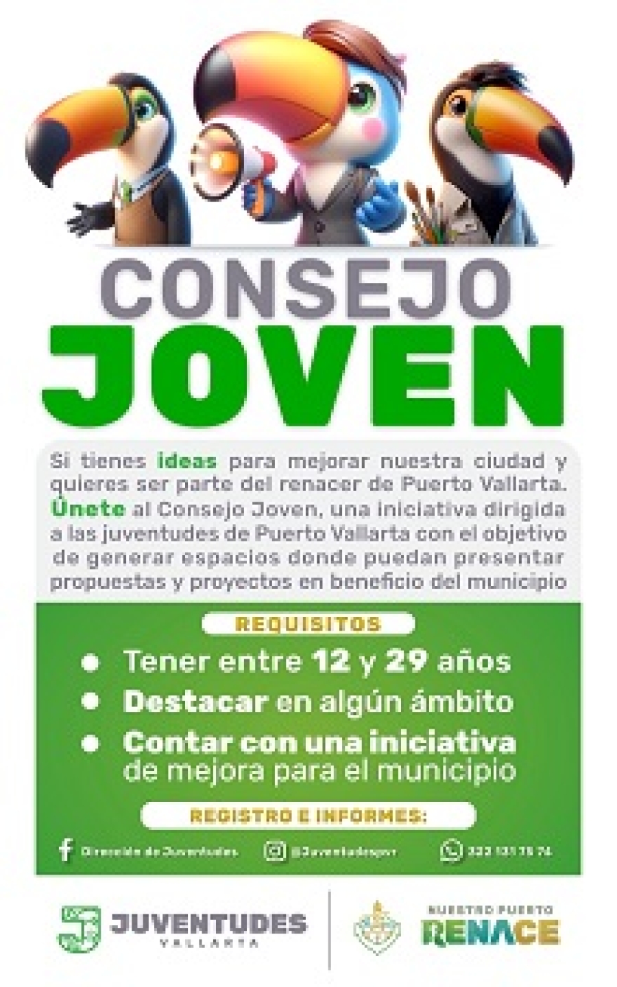La juventud vallartense tiene hasta este viernes 22 de agosto para sumarse al Consejo Joven, una iniciativa del gobierno de Luis Munguía y la Dirección de Juventudes, encabezada por Herova Olmos, que busca dar voz a las y los jóvenes con ideas para transformar la ciudad. Para participar es necesario tener entre 12 y 29 años y presentar una propuesta de mejora para el municipio.